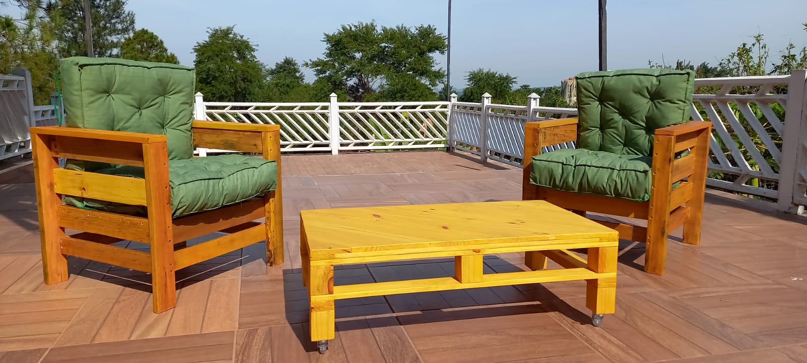 Jogo de 02 poltronas de pallet modelo classico + mesa de centro;